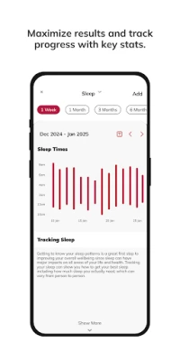 Siekiant užtikrinti maksimalų efektyvumą ir aiškų progresą, ši sistema suteikia galimybę nuodugniai sekti savo pažangą. Fiksuokite kūno matavimus ir darykite pažangos nuotraukas, kad vizualiai matytumėte savo pasiekimus. Niekada nepamiršite treniruotės ar svarbaus įpročio, nes programėlė siųs priminimus, padėsiančius išlaikyti ritmą. Be to, sklandus sinchronizavimas su populiariomis programėlėmis ir įrenginiais, tokiais kaip Garmin, Fitbit, MyFitnessPal ir Withings, leis jums stebėti treniruotes, miegą, mitybą ir kitus svarbius kūno rodiklius vienoje vietoje. Tai visapusiškas sprendimas jūsų kelionei link sveikesnio ir stipresnio „aš".
